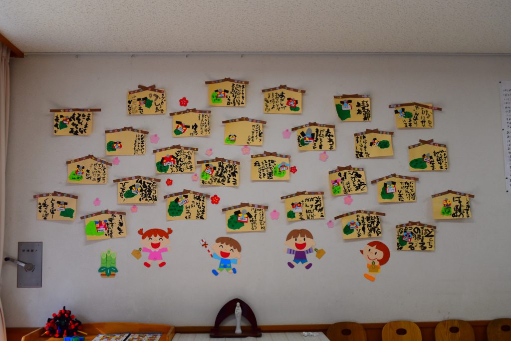 1月の始まりに、年長組さんは絵馬に目標を書きました♪